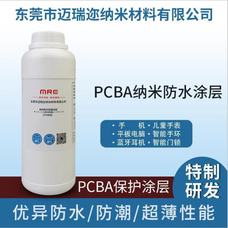 ME-30002 納米防水涂層是一種溶解在氟醚溶劑中的含氟涂層。它外觀澄清透明,固含量低,固化后形成厚度約為 1 微米的,具有優異防水性能的透明涂層。隨著移動電子設備,如智能手機、平板電腦等產品的日趨小型化、輕薄化,內部空間越來越有限。ME-30002 涂層超薄的特點使得它與傳統的三防涂層相比,特別適合應用在這類產品中,用于保護其內部的電子元器件。同時,由于氟醚溶劑容易揮發,ME-30002 電子涂層很容易在室溫下固化,不需要加熱或 UV 等傳統三防涂層所需要的固化條件,極大的降低了工藝成本,提高了生產效率。ME-30002 涂層安全環保。它不可燃,不含有揮發性有機物(VOC),不破壞臭氧層,符合 ROHS,REACH 等法規的監管要求。