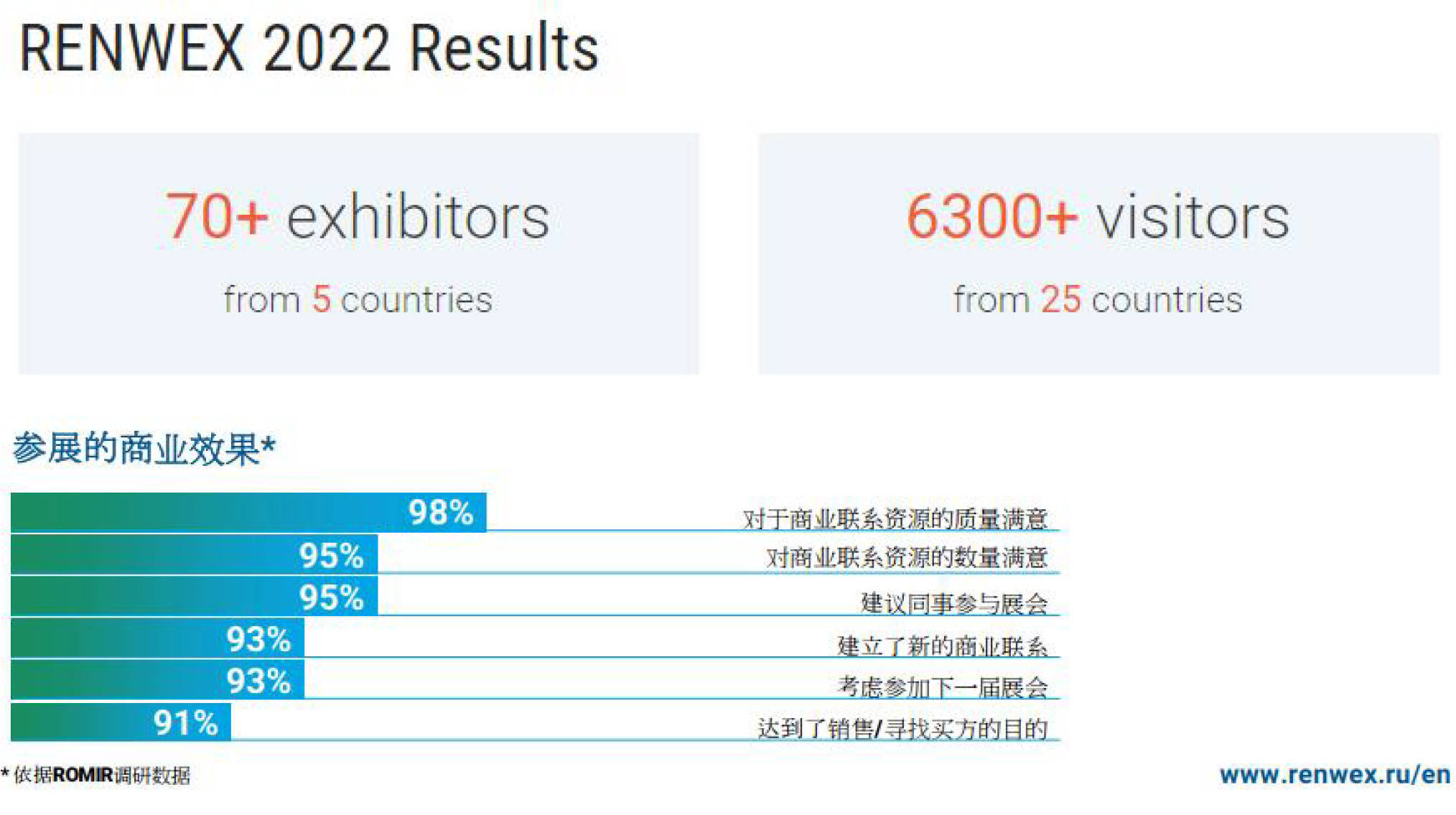 俄羅斯國際新能源及電動汽車展是俄羅斯最專業的新能源國際展覽及論壇,此展會旨在通過向市場主體提供先進的技術和設備,促進俄羅斯能源領域可再生能源的利用,并為企業、政府和社會之間討論和解決行業相關問題提供一個高效的交流平臺,同時,此展還致力于加速可再生能源領域技術和實踐的國際交流,推動俄羅斯到 2035 年在可再生能源領域的占比,使國外公司參與到俄羅斯可再生能源技術領域的研究中來,并在俄羅斯當地設廠,促進俄羅斯企業對可再生能源技術的研發和使用